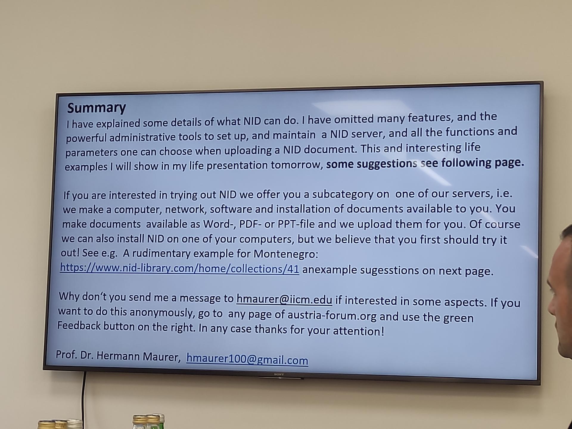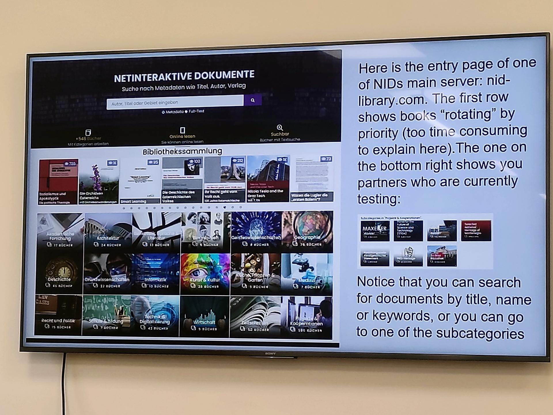 Interaktivna platforma NID (Net-Interactive Documents), aplikacija za pohranjivanje, pretraživanje i kreiranje sadržaja / dokumenata NID (www.nid-library.com), odnosno softverskog paketa koji je kreirao Tehnološki univerzitet u Gracu, kao dio platforme Austria-Forum (www.austria-forum.org), predstavljena je 20. i 21. aprila, u Rektoratu u Podgorici.