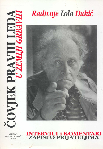 Đukić, Radivoje – Lola: ČOVJEK PRAVIH LEĐA U ZEMLJI GRBAVIH : intervjui i komentari. 1998. Priredio Čedomir Drašković. Štampa Yugrafic, Podgorica. Format 24 x 17. Strana 279.- (Posebna izdanja ; knj. 38). Tiraž 500. Broširano. Ćirilica