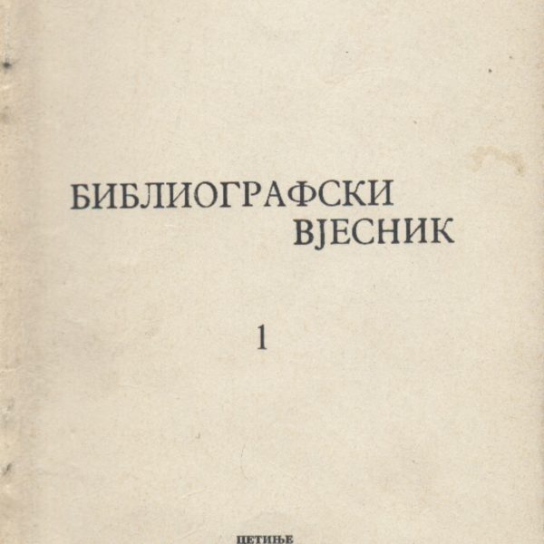 BIBLIOGRAFSKI VJESNIK 20.08.2018. Serijske publikacije Cijena: 0.50€ BIBLIOGRAFSKI VJESNIK : časopis Društva bibliotekara Crne Gore i Centralne narodne biblioteke Crne Gore “Đurđe Crnojević”. Izlazi tri puta godišnje. God. I–IV : 1961–1964. God. V–XXXVII : 1976–2016.ISSN 0409 – 3739 Poruči Podijeli  Katalog izdanja Fototipska izdanjaPosebna izdanjaBibliografijaBio-bibliografijaSerijske publikacijeKataloziPriručnici Događaji U NBCG ODRŽAN OKRUGLI STO „110 GODINA OD ROĐENJA DR NIKA S. MARTINOVIĆA“ 13.12.2024. POSJETA OSNOVACA IZ BUDVE NBCG 12.12.2024. „110 GODINA OD ROĐENJA DR NIKA S. MARTINOVIĆA" U NBCG 11.12.2024.
